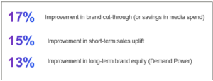 Optimising your creative copy – one of the three key behaviours identified in the Blueprint for Brand Growth – plays a pivotal role in doing this more successfully. Again, the figures speak for themselves with creative copy that has been optimised on average producing the following benefits: